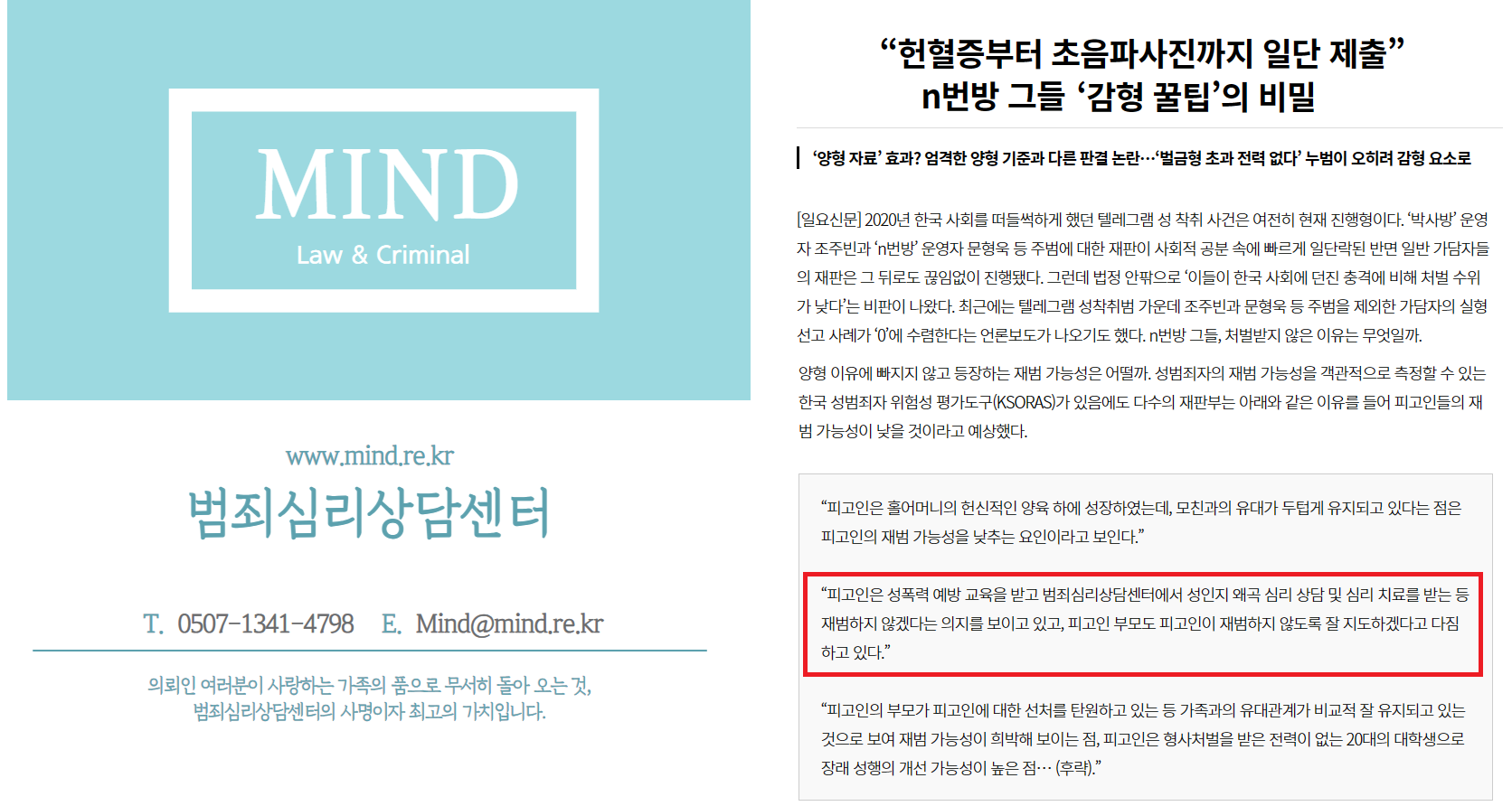 안녕하세요. 미성년자 성범죄 전문 상담센터 범죄심리상담센터 입니다.